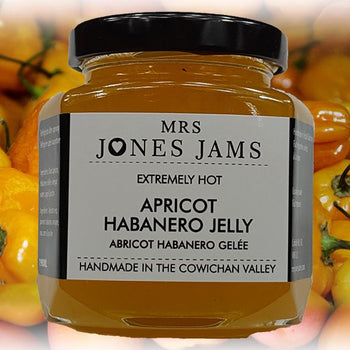 Fiery Habanero chillies combined with sweet, dried apricots! Delicious! Serve with your favourite crackers and cream cheese, and perhaps a glass of Merlot? INGREDIENTS: sugar, apple cider vinegar, dried apricots, Habanero chillies & pectin. CUSTOMER COMMENT “Ordered 4 jars of Apricot Habanero to give 3 as gifts… didn’t happen after...