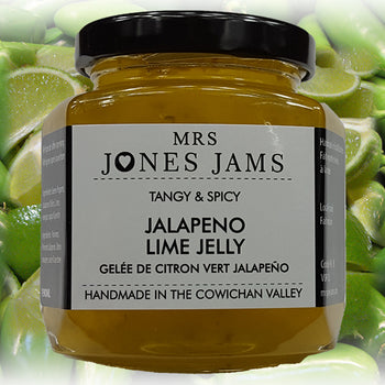 Tangy with lime and spicy with jalapeno chillies this hot pepper jelly has a slightly Mexican feel. Perfect with cheese, corn chips and a cold beer. INGREDIENTS: sugar, vinegar, jalapeno chillies, green bell peppers, lime & pectin. Mrs Jones Jams is a range of natural jams and preserves, all handmade in small batches...