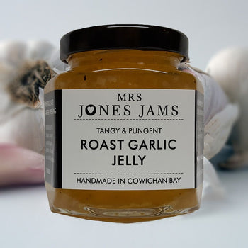 Garlic Lovers! Taste this delightful Roasted Garlic Jelly made with whole garlic cloves slowly roasted with olive oil, salt and cracked black pepper. INGREDIENTS: Sugar, Apple Cider Vinegar, Water, Roasted Garlic Cloves, Olive Oil, Pectin, Salt and Black pepper. Mrs Jones Jams is a range of natural jams and preserves, all handmade...