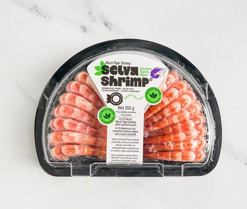 Premium Selva Black Tiger Shrimp are naturally raised in mangrove forests and free from artificial feeds — offering incredible colour, taste, and texture in every bite. These shrimp are pre-cooked and beautifully arranged in a convenient half-ring, ready to serve with a classic, tangy cocktail sauce.